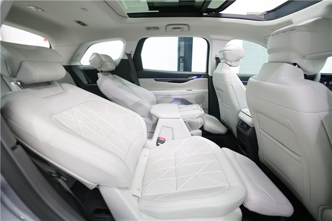 内部空间上,福特锐界L是同级唯一具备2-2-3和2-3-2座椅布局可选的大7座SUV。2-2-3布局下,二排座椅可使用电动调节,更有三种座椅一键调节模式,其中“一键舒躺模式”可自动调节至“座椅向后41度、腿托向上50度”的近零重力模式,带来媲美头等舱的乘坐体验。二排座椅还有同级少有的加热、通风功能,很好地照顾到了老人、孩子的出行体验。2排通道宽至200mm,比一些MPV还宽,成年人可以轻松走进第三排。